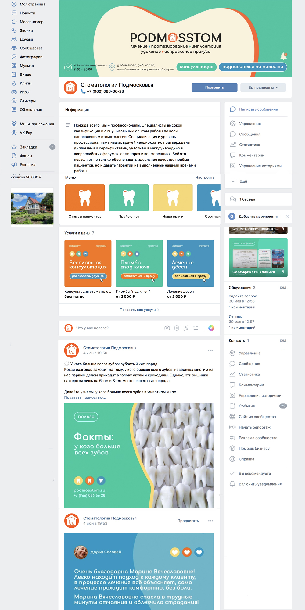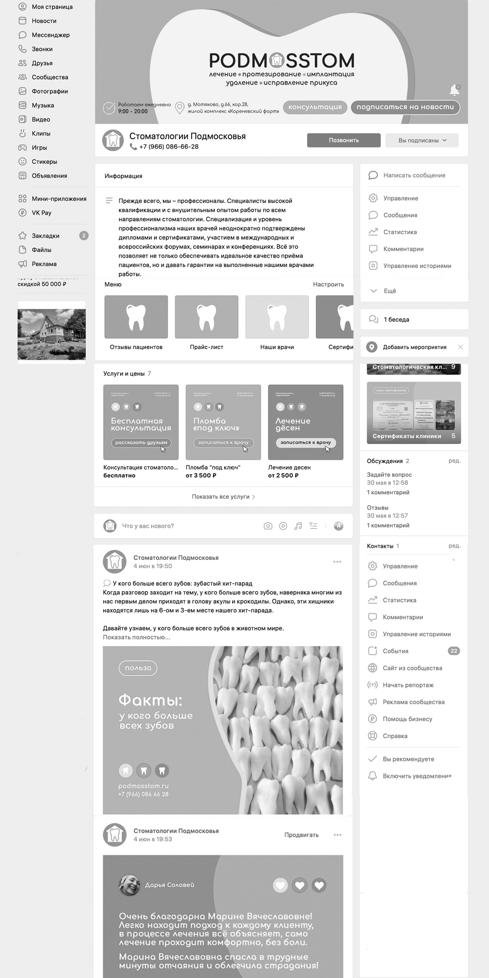 Задача: запуск бизнес-страницы, привлечение новых клиентов, формирование узнаваемости клиники
