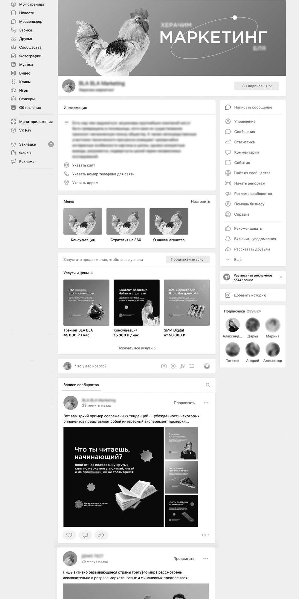 Задача: блог-визитка/витрина, информирование клиентов,